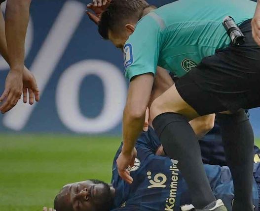 در حالی که این بازیکن روی زمین افتاده بود، داور بلافاصله واکنش نشان داد و زبان این بازیکن را از حلقش خارج کرد.